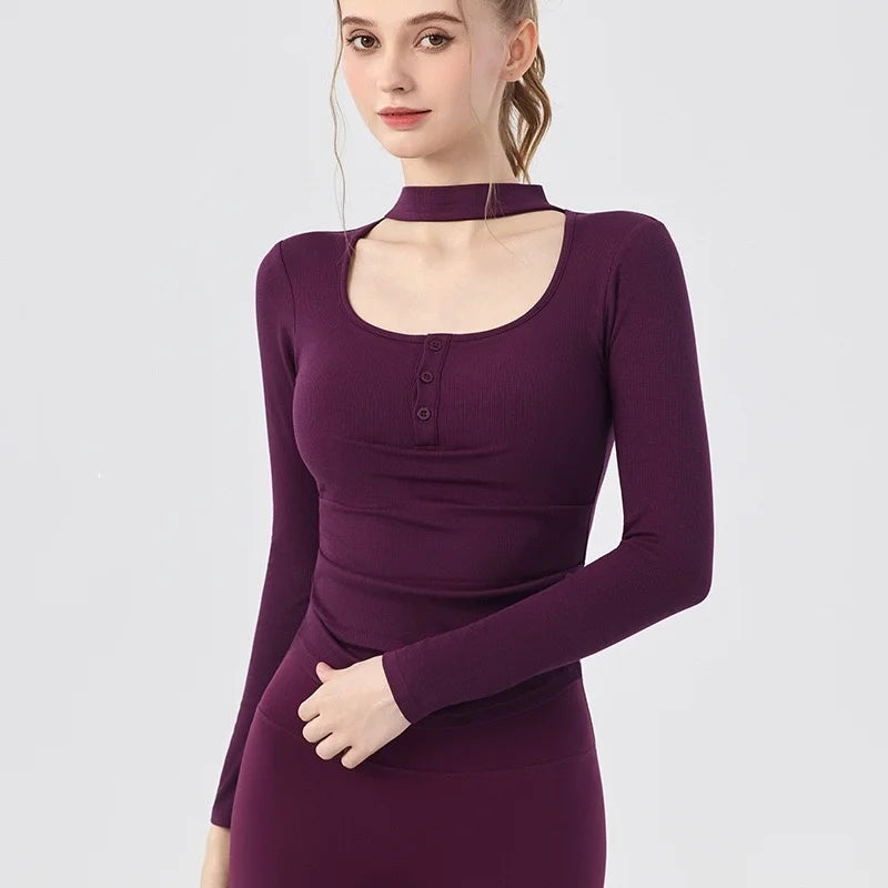 Gym Women Sports Tops Yoga Fitness Long Sleeves Breathable Comfort Workout Clothing Running Gym Pilates Yoga Shirts with Chest