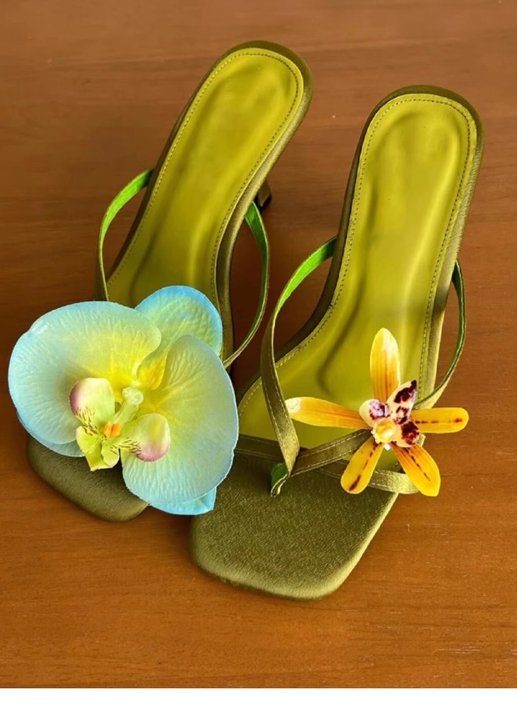Handmade Asymmetric Flower Sandals For Women High Heel Semi-slipper