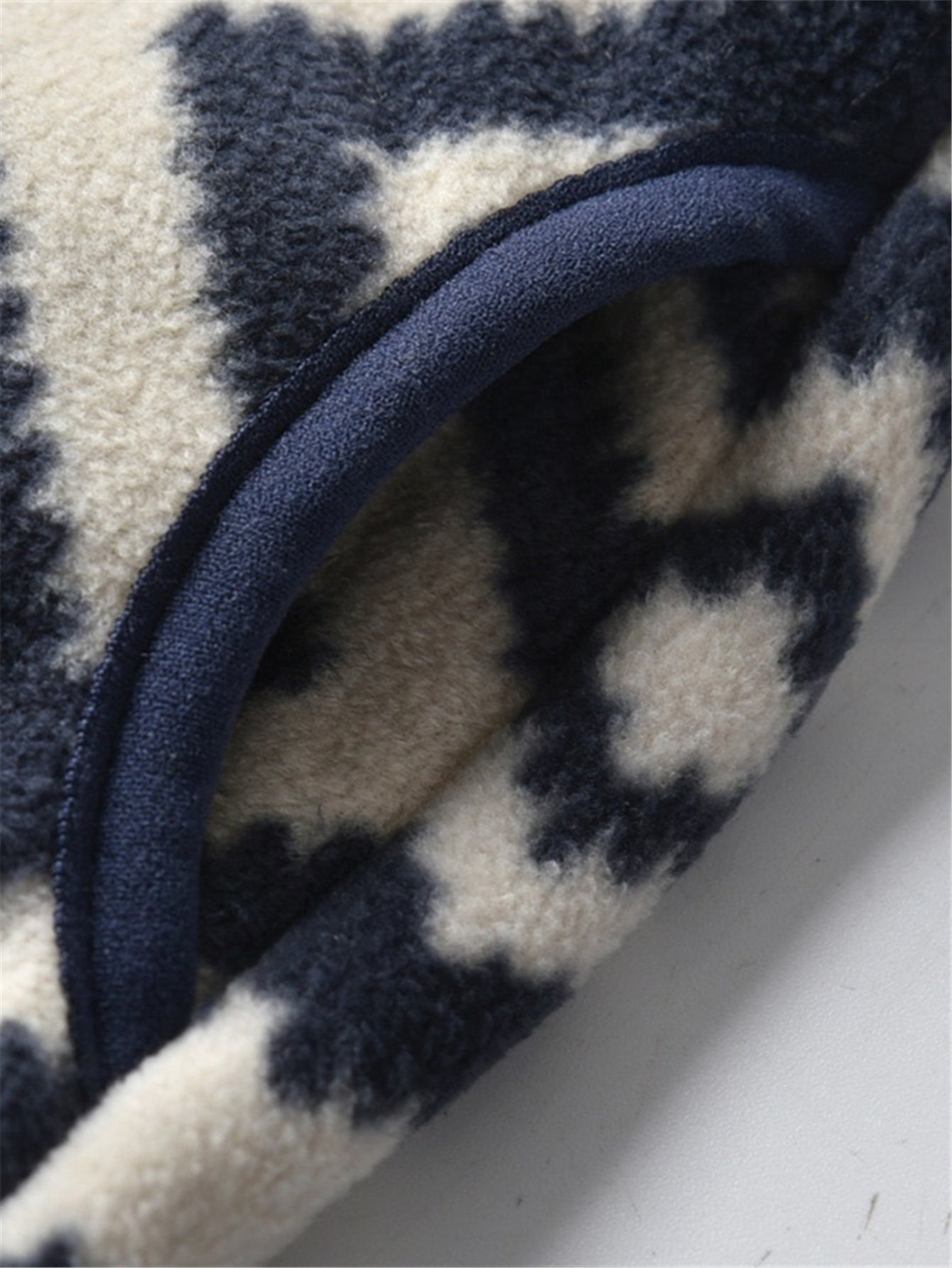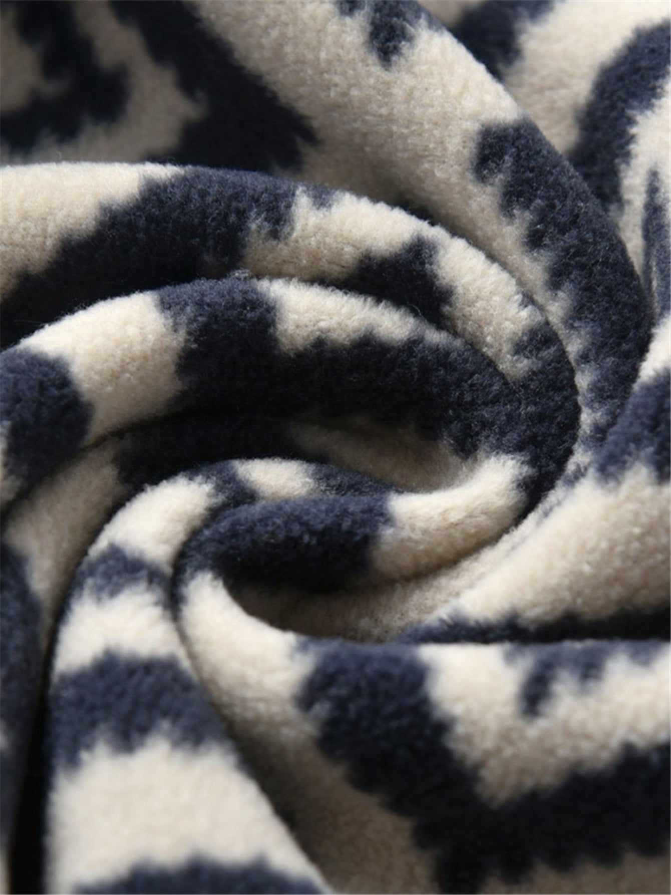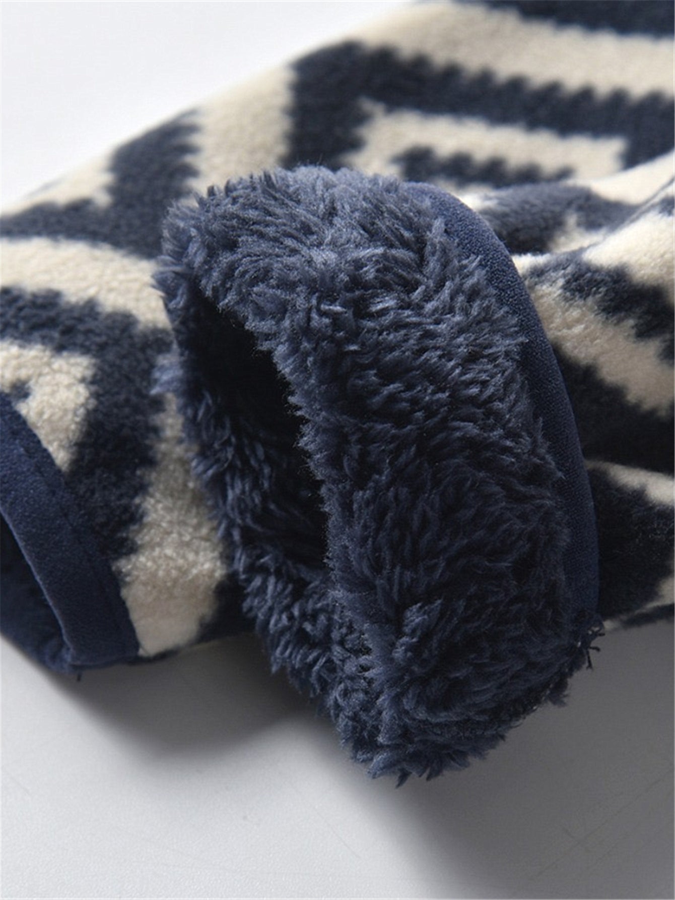 New Boys Vintage Plaid Printed Casual Thickened Warm Stand Collar Zipper Jacket