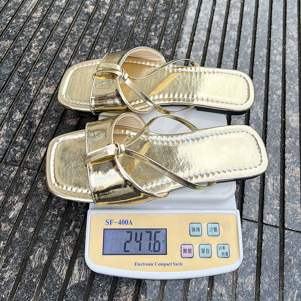 Women's One-line Glossy Square Toe Solid Color Slippers